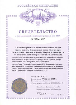 Свидетельство о регистрации программы для ЭВМ